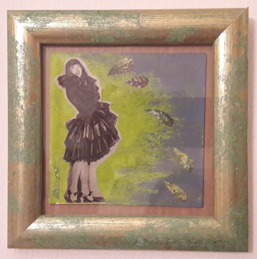 Packaging paper and tissue paper cut-outs and acrilics on cardboard
